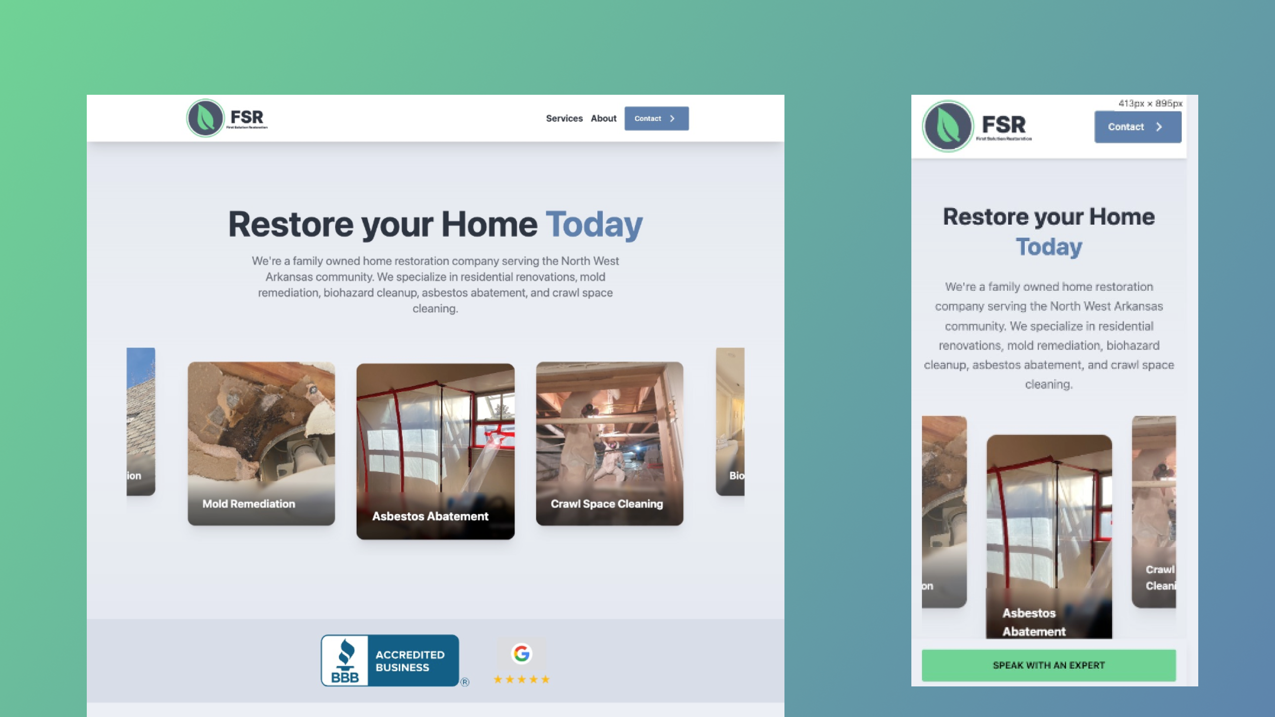 Saving a local restoration company website