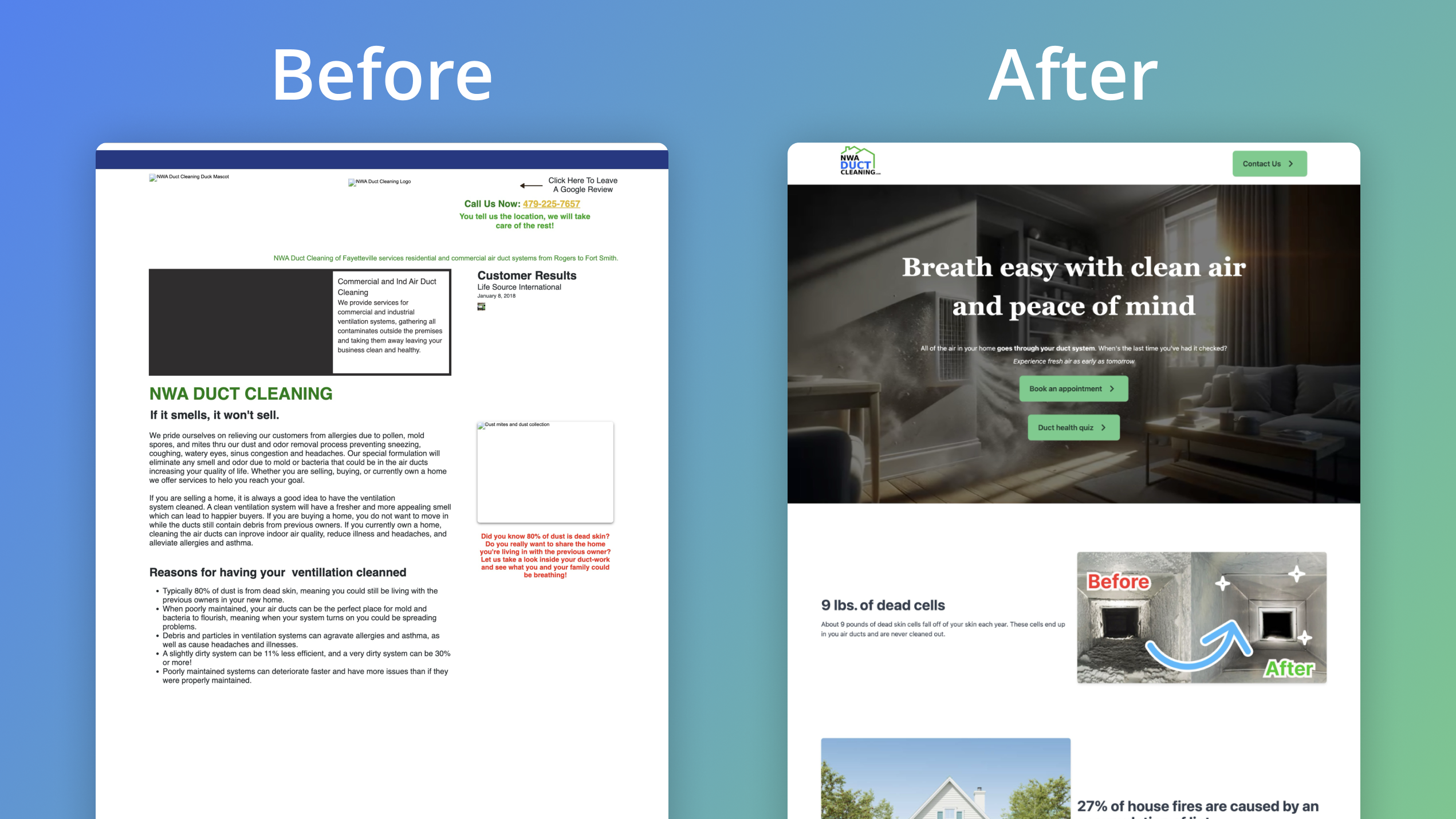 Refreshing a Duct Cleaning Business Website and generating leads
